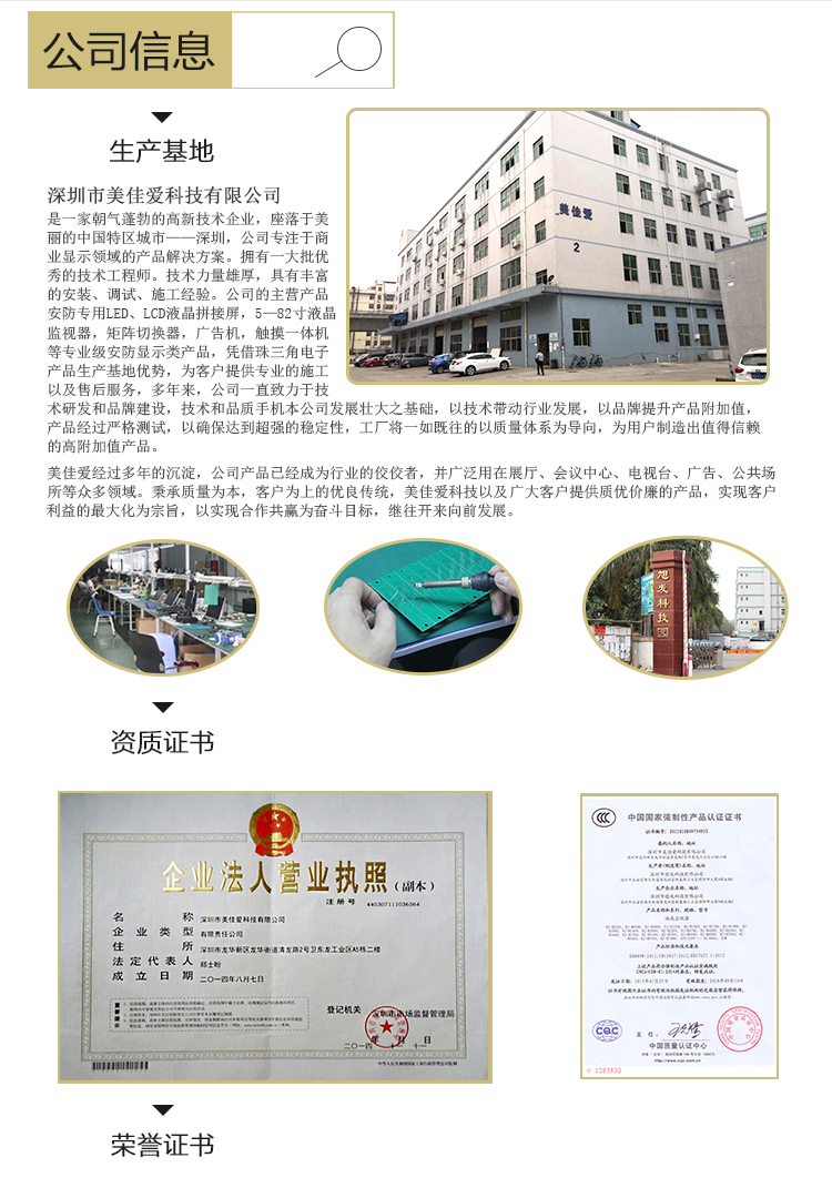 【深圳市美佳爱-液晶广告机,触摸一体机生产厂家电话400-997-9971】32寸红外触摸一体机(电脑/壁挂)产品通过ISO9001_3C认证,主营多点红外/电容式触摸屏一体机,触控查询一体机,其他尺寸18.5寸21寸24寸27寸32寸40寸43寸46寸49寸55寸65寸75寸86寸98寸100寸多功能多媒体教学会议一体机,户外立式/壁挂双面广告机,单机版/安卓网络广告机 竖屏楼宇电梯广告机,长条型屏,工业级工控电脑触摸显示器,大尺寸触摸屏查询系统,商显平板电脑电视,提供报价价格,安装施工,售后维修等